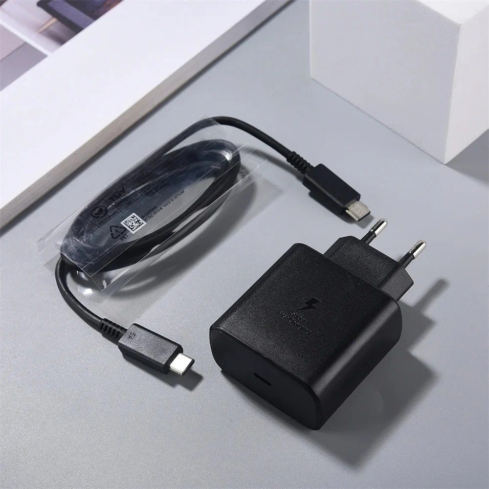 Samsung 45W 5A USB-C Power 2-Pin Adapter with Cable – Super Fast Charging for Phones, Tablets & Earbuds