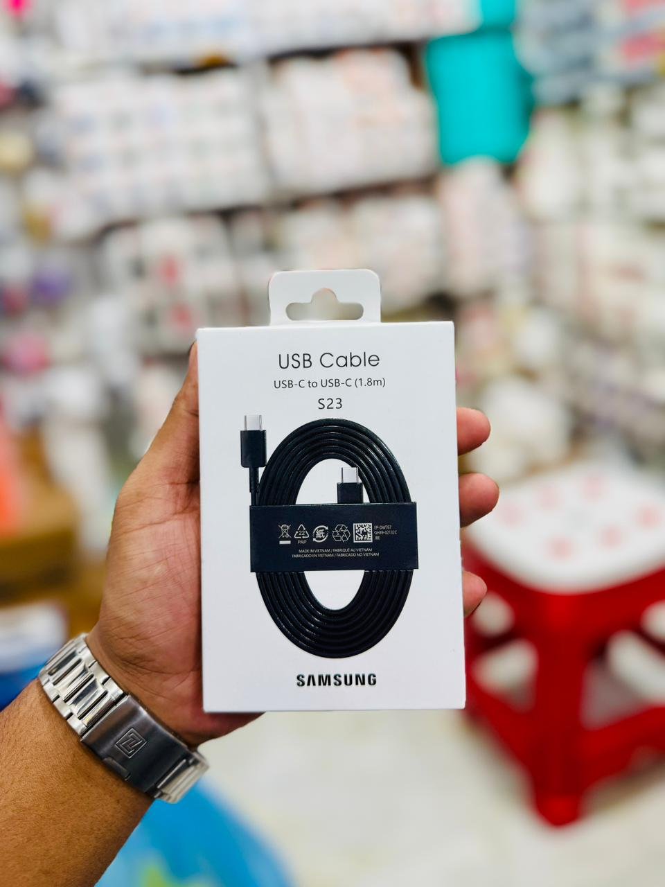 Buy Samsung S23 Original 1.8M Type-C Cable in Bangladesh. 3A USB-C to USB-C fast charging & data sync, supports 45W PD Super Fast Charging for Galaxy S23, S22, S21, S20, and Note 20 Ultra.