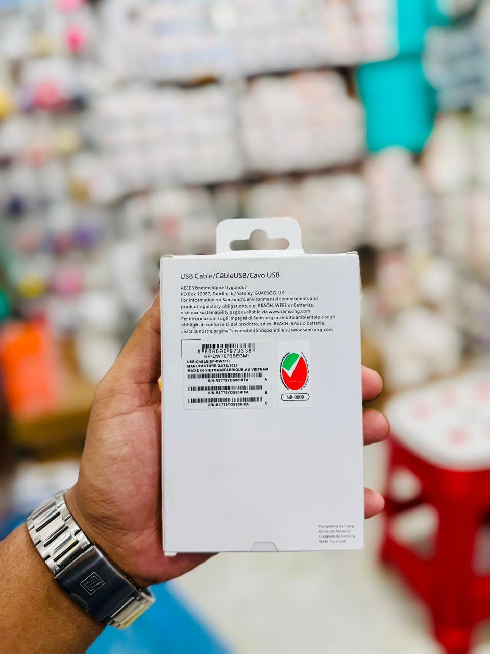 এটি Samsung ডিভাইসের জন্য একটি আসল ক্যাবল, যা সামঞ্জস্য এবং দীর্ঘস্থায়িত্ব নিশ্চিত করে। সাধারণ ক্যাবলের তুলনায়, এটি নিরাপদ চার্জিং দেয় এবং ব্যাটারি ক্ষতি বা অতিরিক্ত তাপ থেকে রক্ষা করে।